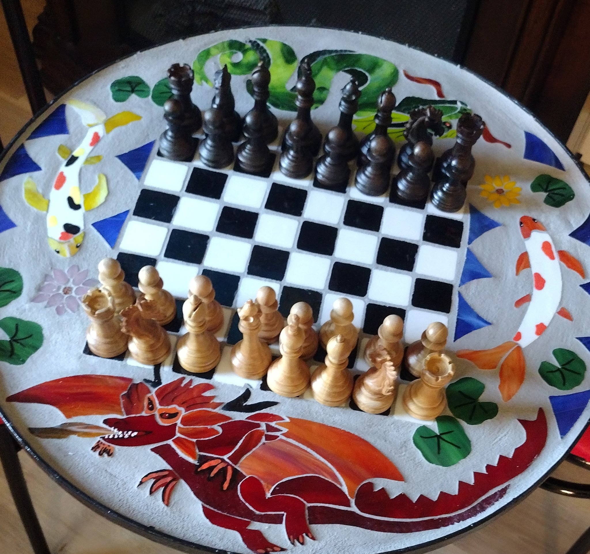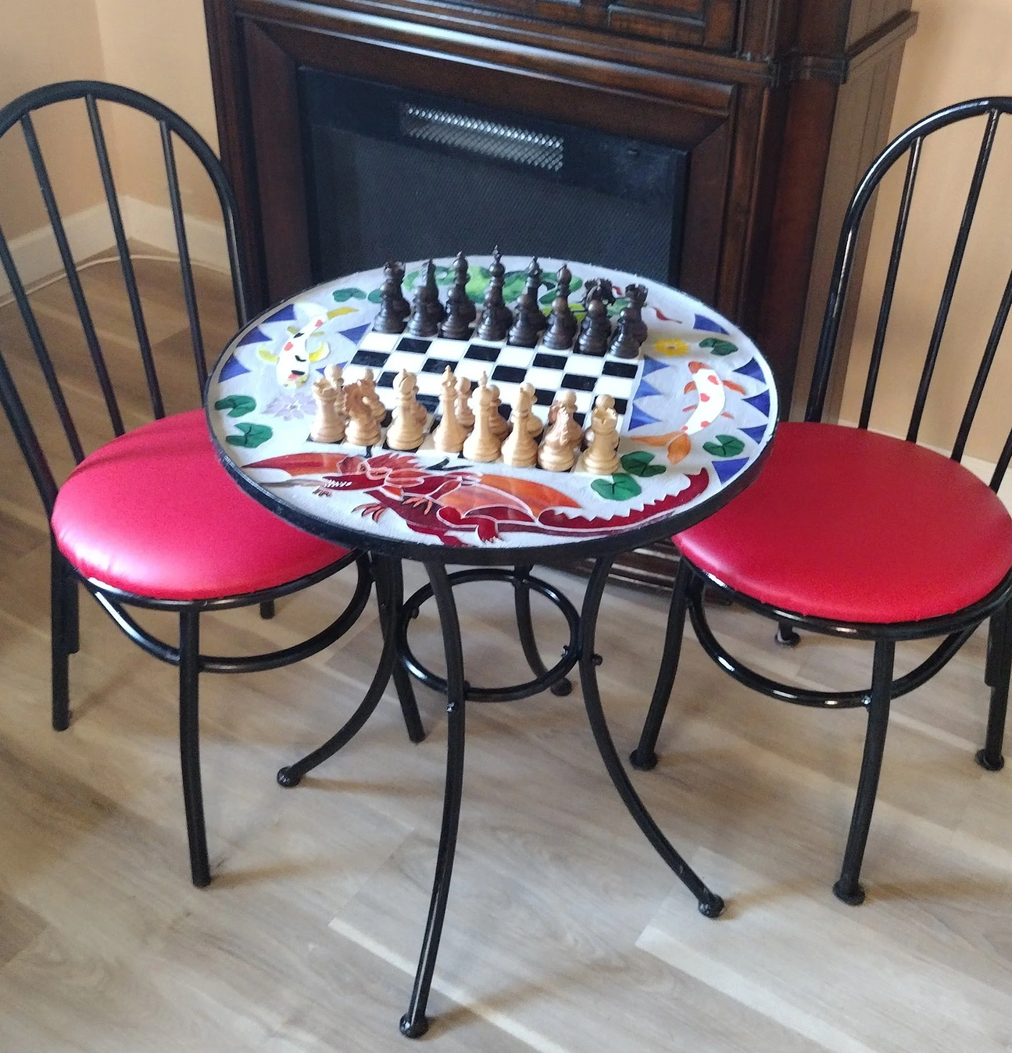 Shop Personalized Mirrors $155.00 Star Mirror $55.00 3 Kokopelly Dancing $255.00 Tropical Frog on Leaves $55.00 Lady Bug $25.00 3 Tropical Frogs $225.00 Baby Bear on Moon $35.00 Clucky $35.00 Macaw Mosaic $225.00 Turquoise Horse Portrait in Horseshoe with a beaded feather strap $35.00 Bass $225.00 Virgin de Guadalupe $225.00 Stand Alone Owl $75.00 Trivets $25.00 Butterfly Collection $350.00 Frog on lily pad with butterfly $55 $55.00 Mosaic Chess Table and Chairs $455.00 Mermaid in the sea $75.00 3 Butterflies $55.00 Star Shaped Sun Catchers $55.00